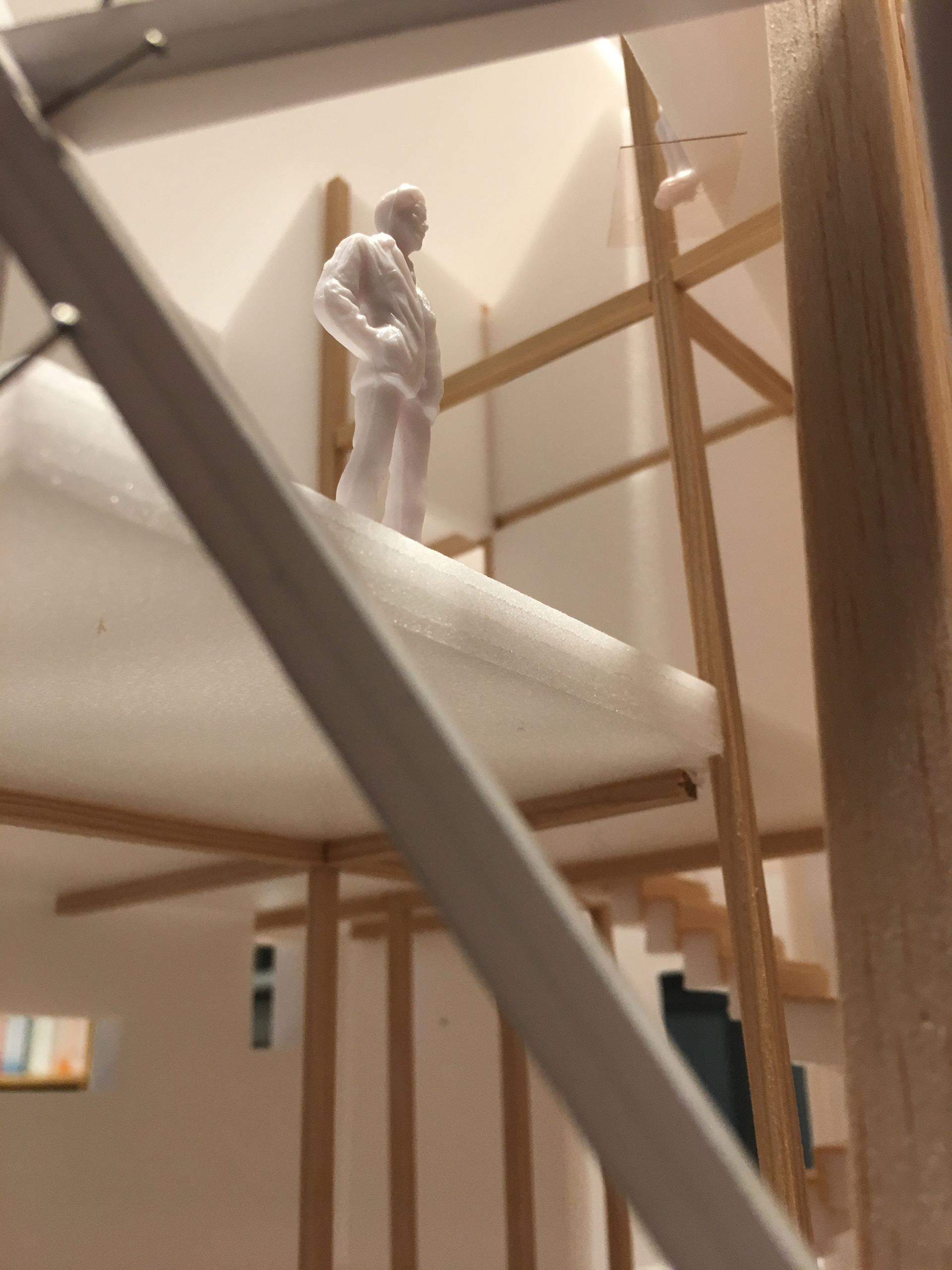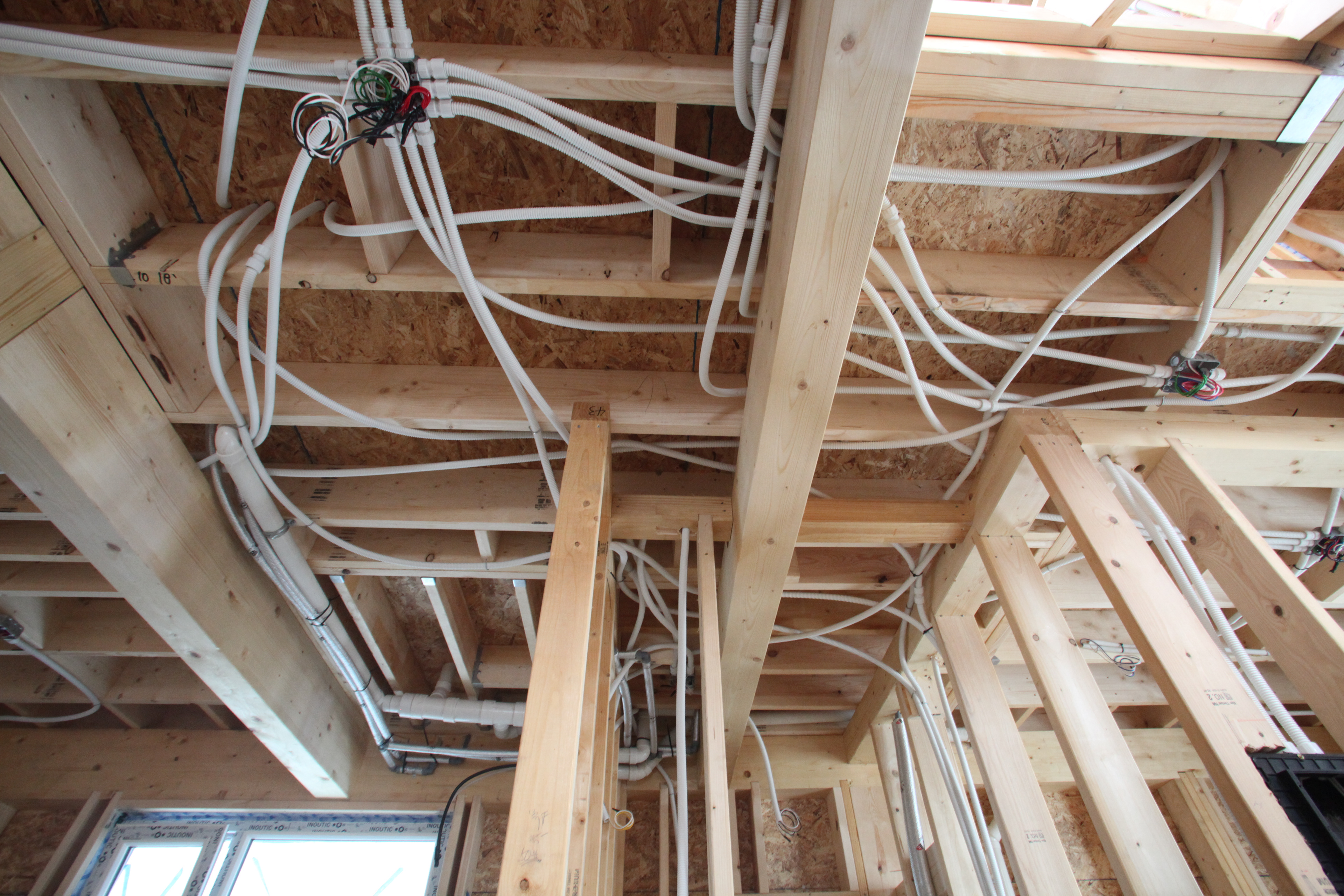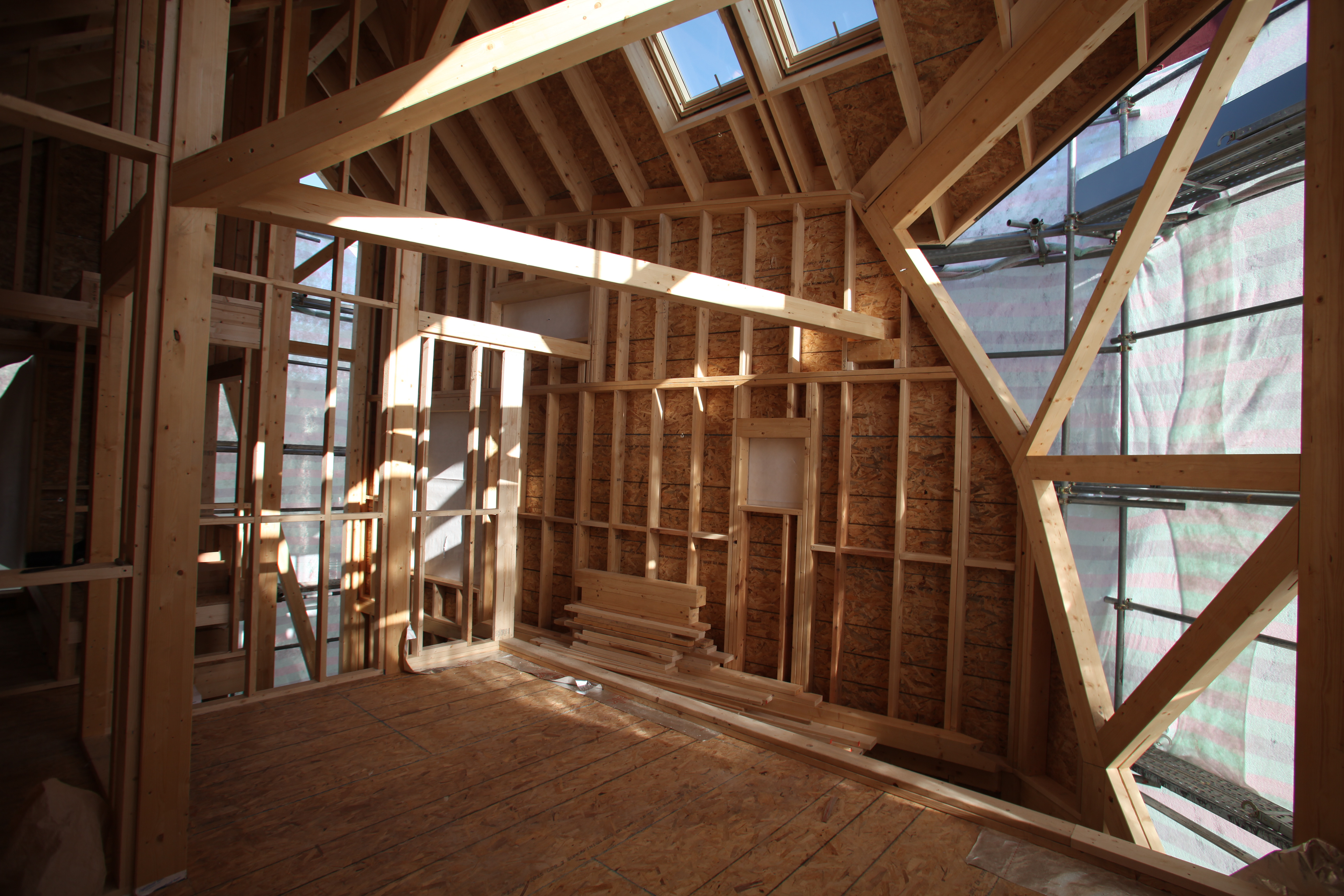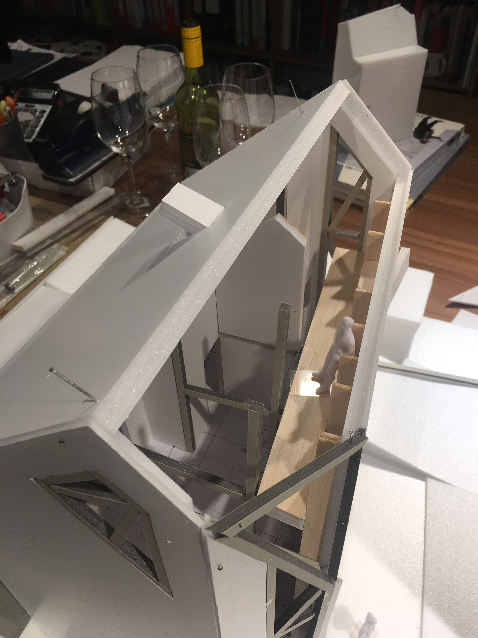 경사면에 위치해 있어 1층은 콘크리트 구조로 계획하였고 그 위에 두 개 층의 목구조가 얹어졌다. 목구조는 중목구조를 이용하였고 마치 신발끈을 묶듯 얼기설기 얽힌 구조를 만들어 자연스럽게 구조가 내부에 드러나도록 하였다.