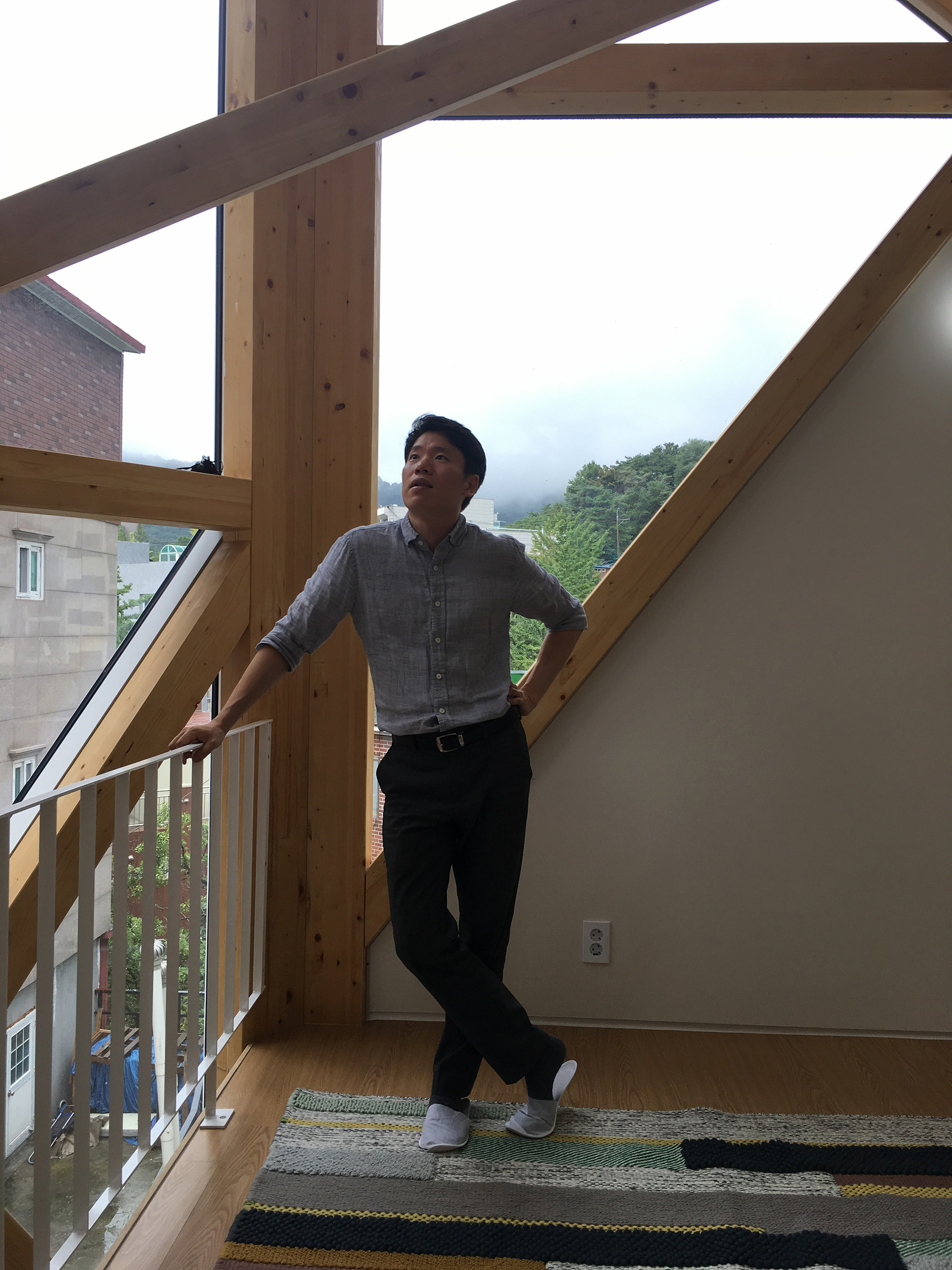 이 집은 두 개의 거대한 창이 각각 동쪽과 남서쪽을 향해있다. 주변 집들로부터의 시선의 방향을 고려해 배치된 것으로 외부에서 강한 인상을 주는 한편, 내부에서는 스펙타클한 경관을 만들어 준다. 특히 남서쪽의 창은 거대한 Y자 모양으로 국민대학교 방향으로의 시원한 경관을 만들어주고 목구조의 구조미를 안팎으로 드러내어 준다.