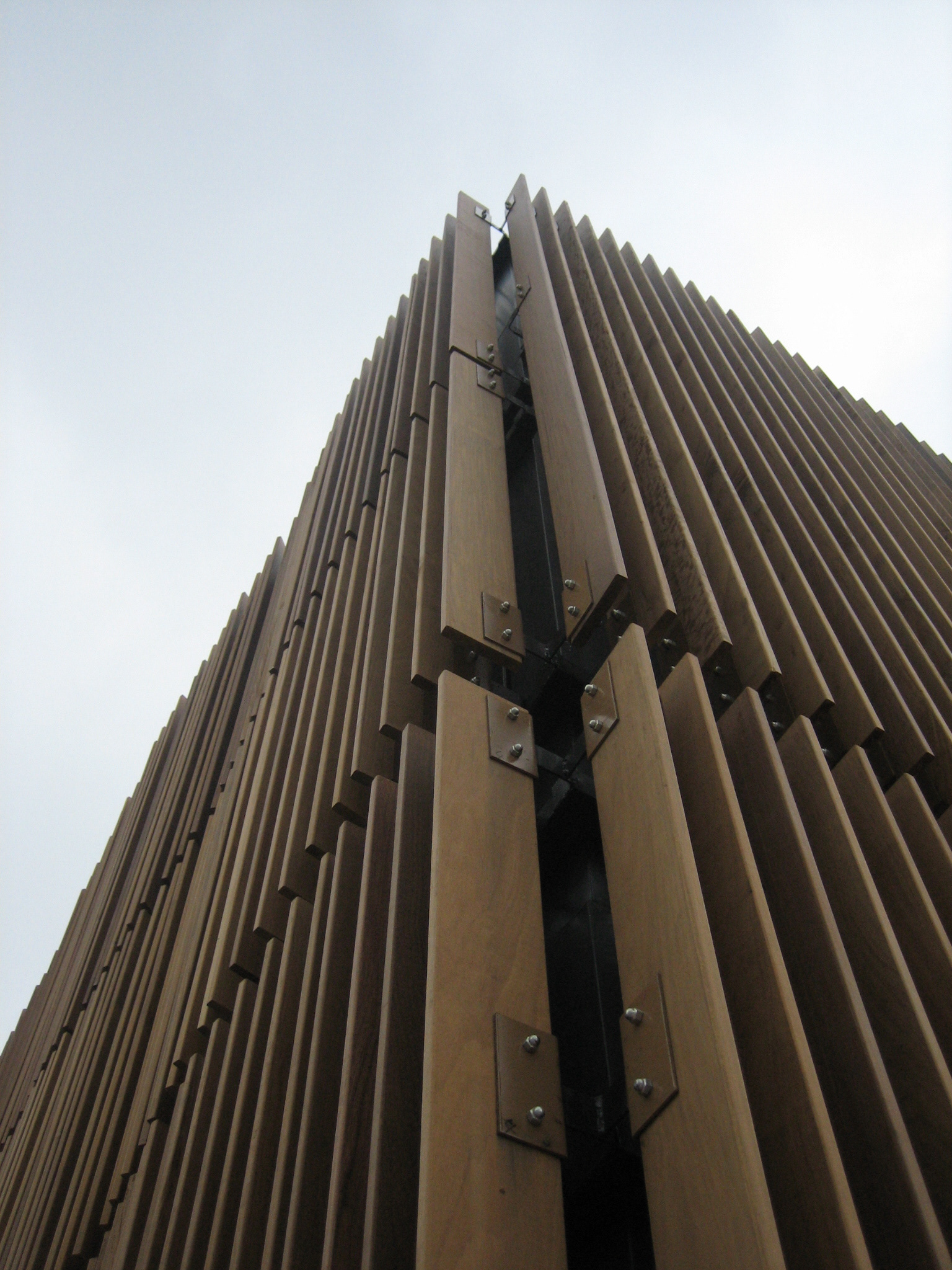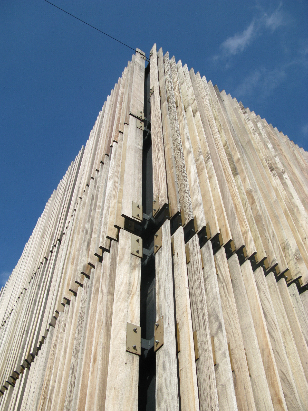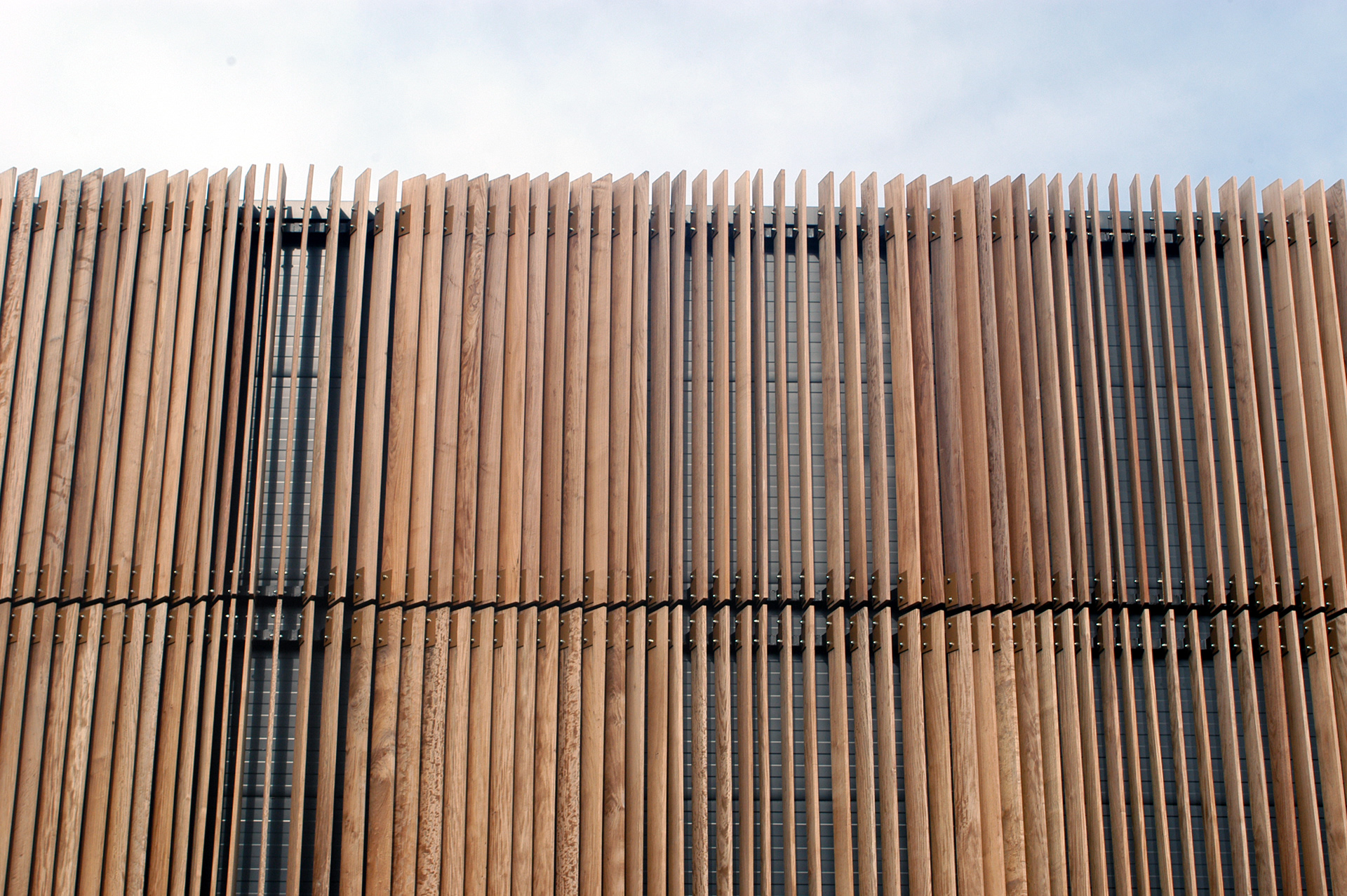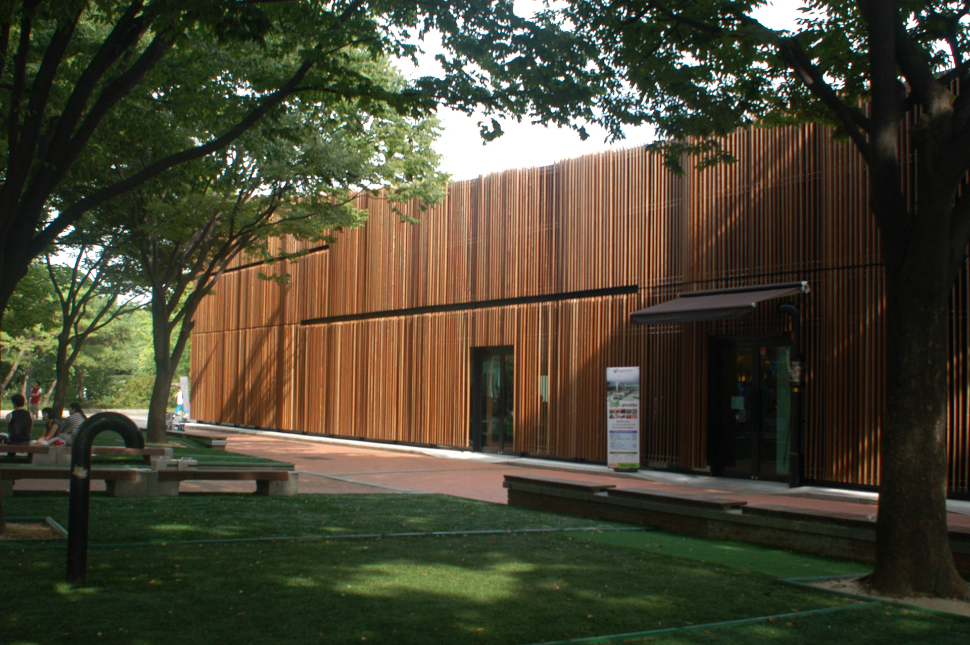 광장의 완성 : 하지만 광장의 규모에 비해 상대적으로 낮은 건물들로 인해 위요감이 없으며 방향성을 갖기가 어려웠다. 따라서 좀더 높은 높이와 통일된 재료에 의한 일관된 방향성을 제시해주는 것이 올림픽프라자의 개선 방향이 되었고 이것이 광장의 기능을 더욱 강화시켜 정체성을 확고히 해줄것이다. 높이는 기존 4.95m에서 8.85m로 1.7배 이상 증가시키고, 형태는 단순화 시키되 기존 시설인 평화의 문과 몽촌토성의 곡선을 전체 형태를 결정짓는 지붕선으로 활용했으며, 기존 공원의 숲과 자연스럽게 어울리는 목재를 주재료로 사용했다. 하지만 규모의 장대함이 주변 자연 환경을 억누르지 않도록 개방적인 디테일을 사용해야만 했고 이것이 유리와 나무루버가 어울려 자연과 건물이 서로 호흡하는 효과를 만들어냈다.